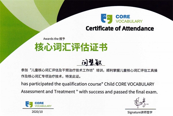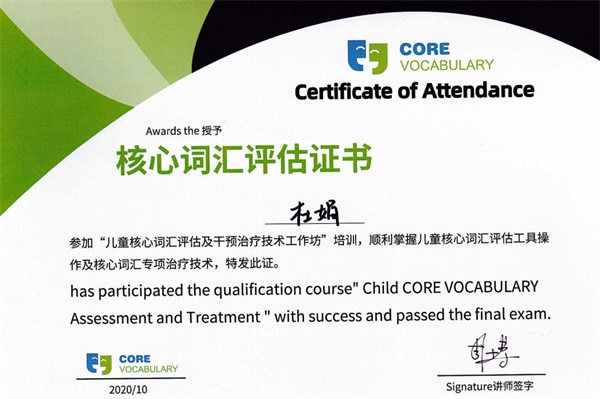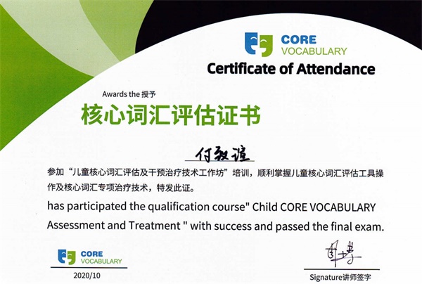 2020年10月17日至18日,天爱康复公益服务中心付致瑄、闫慧敏、杜娟三位教师,远赴南京参加儿童核心词汇评估与干预治疗技术工作坊。本次培训让老师们了解不同障碍特殊儿童的言语语言训练重点,掌握儿童言语发育学及言语语言病理学的权威干预方法。