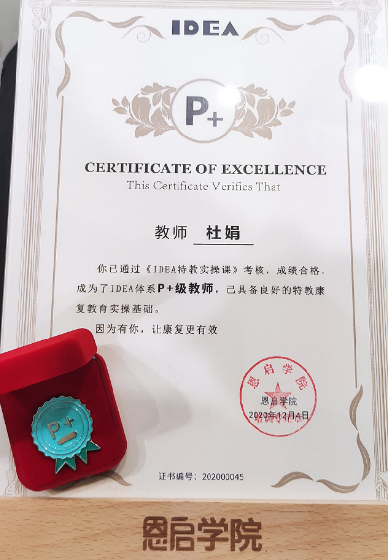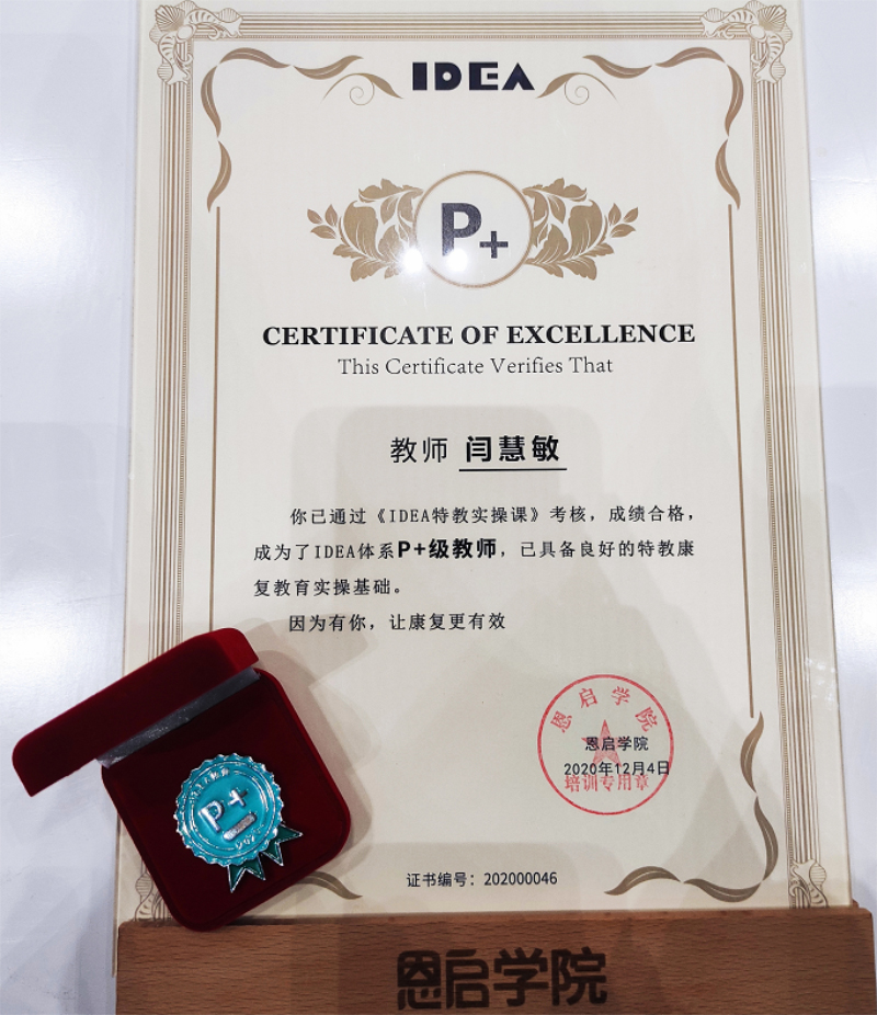 恭喜天爱康复公益服务中心闫慧敏、杜娟两位老师取得IDEA体系P+级证书