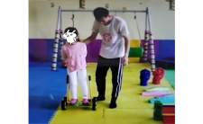 现在朵朵可以独立上下低阶楼梯,独立骑行平衡踩踏车,独立进行跨障碍任务,独立进行平衡板行走任务。
